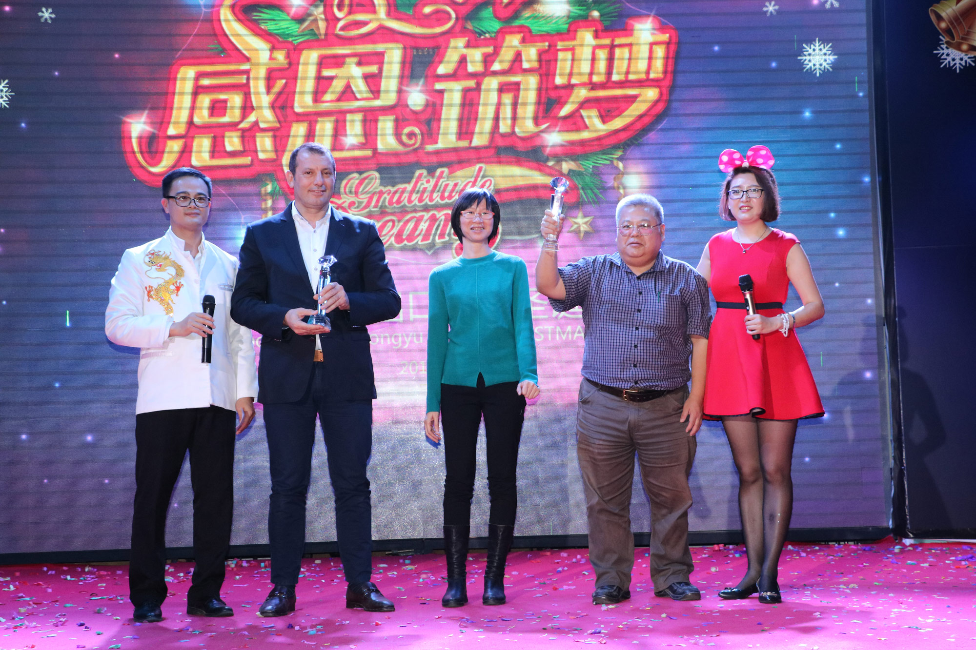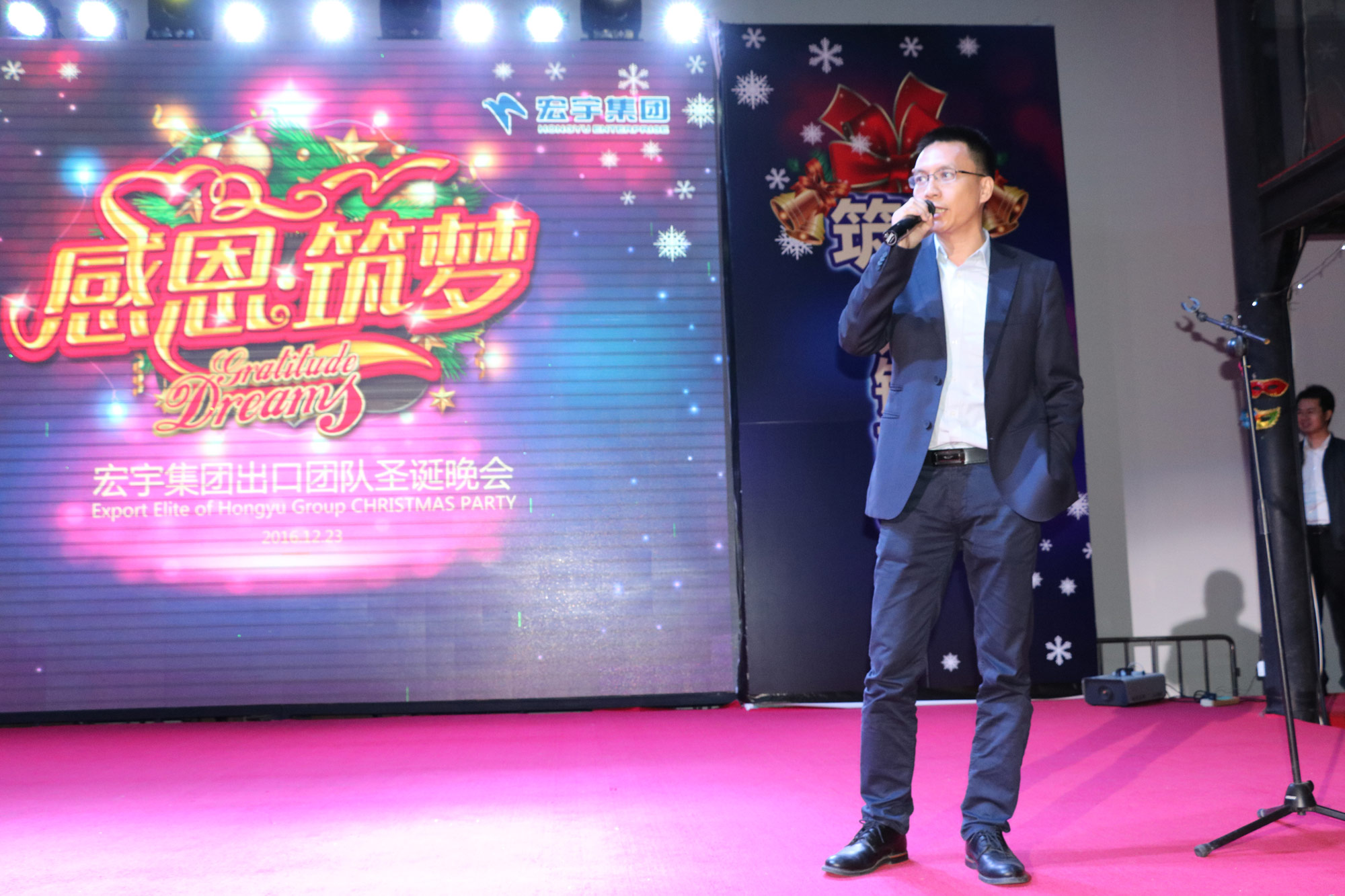 晚宴正式開始前,集團出口部總經理伍劍鋒發了表熱情洋溢的祝酒辭,伍總表示向一直以來支持、信賴宏宇的海內外客戶表示由衷的感謝,對出口團隊所有精英們兢兢業業的工作表示真摯的感謝,同時他寄語大家在新的一年里團結一致、鏗鏘前行、共筑宏宇夢。最后他衷心的祝福每一位現場的嘉賓圣誕快樂!
